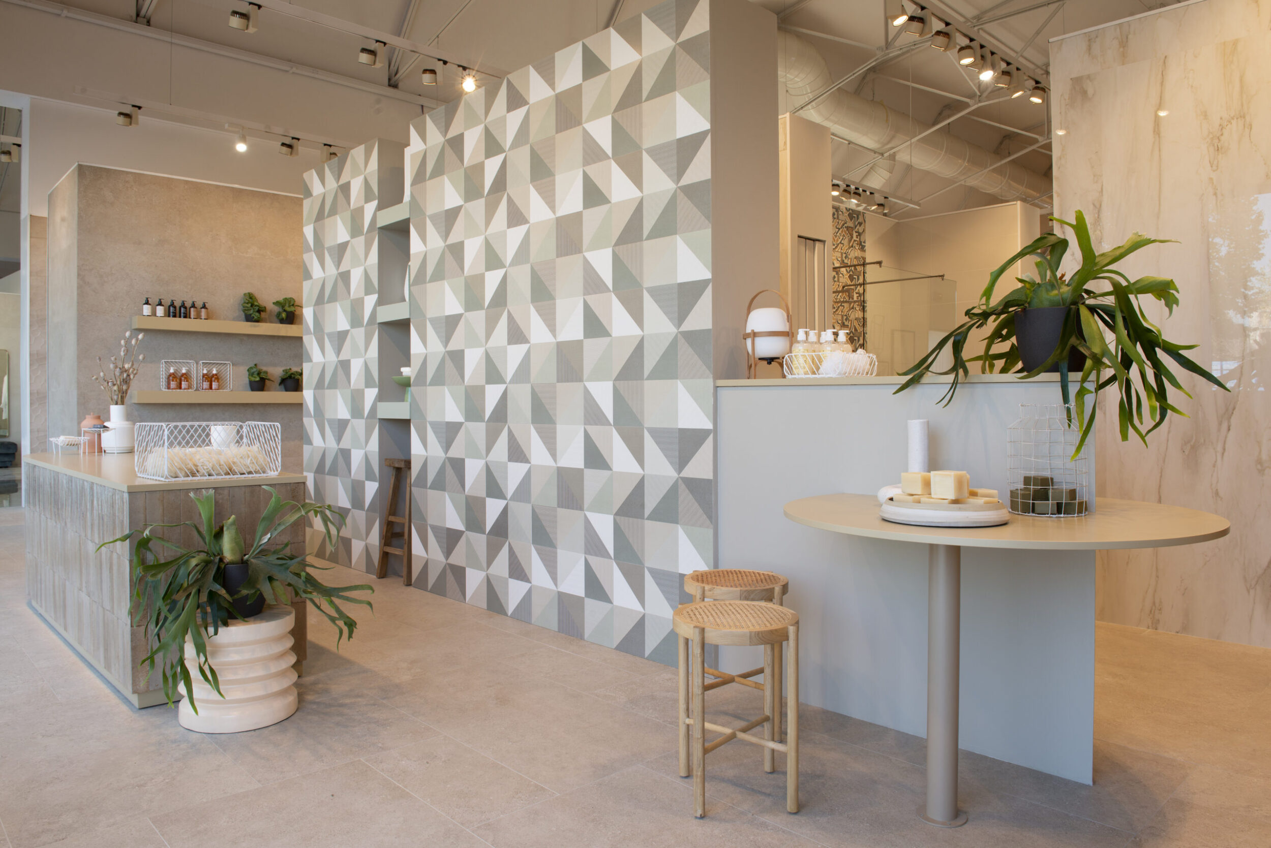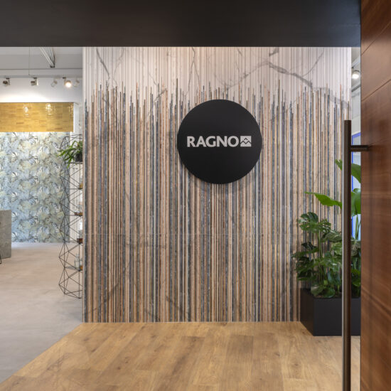 In the new Ragno showroom, the collections have been used to illustrate a variety of intended uses, from residential to commercial, to demonstrate the breadth and versatility of the product offering.