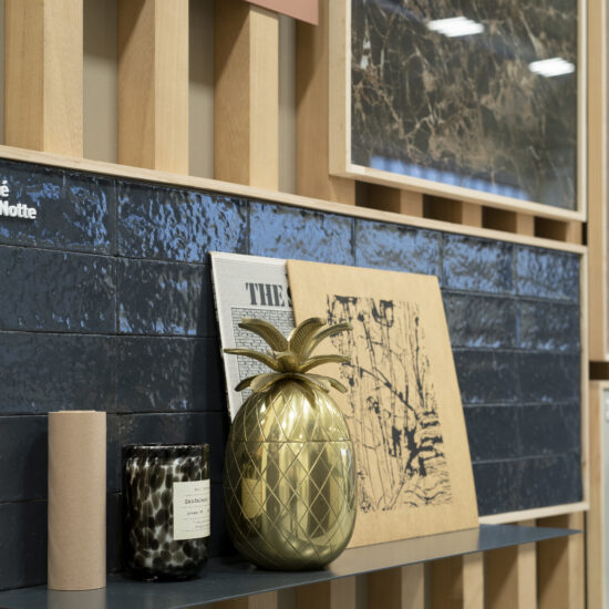Products are displayed on both vertical and horizontal surfaces for a full appreciation of the individual collections’ distinctive features and characteristics.