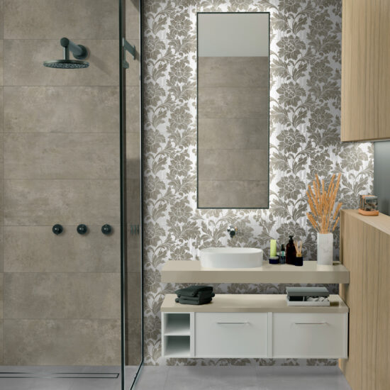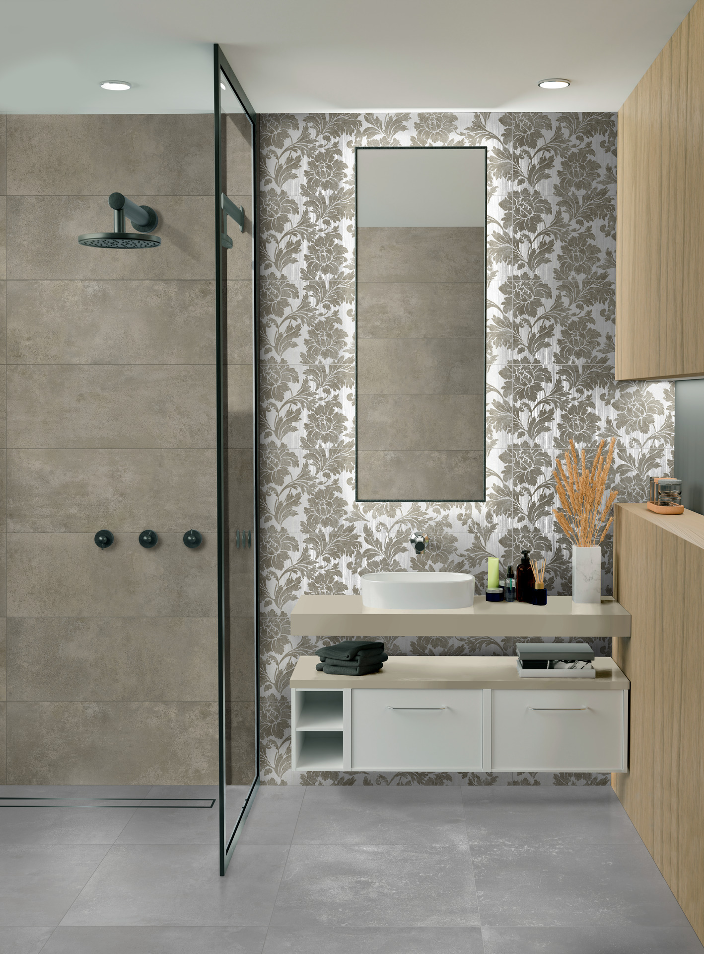 Materials such as porcelain stoneware and ceramics are perfect for this purpose: their non-porous surfaces are ideal for the dampest areas, preventing the formation of fungi and mould. However, making a choice that ticks the functional boxes does not mean giving up on creative solutions that can decorate the bathroom with a truly unique style.