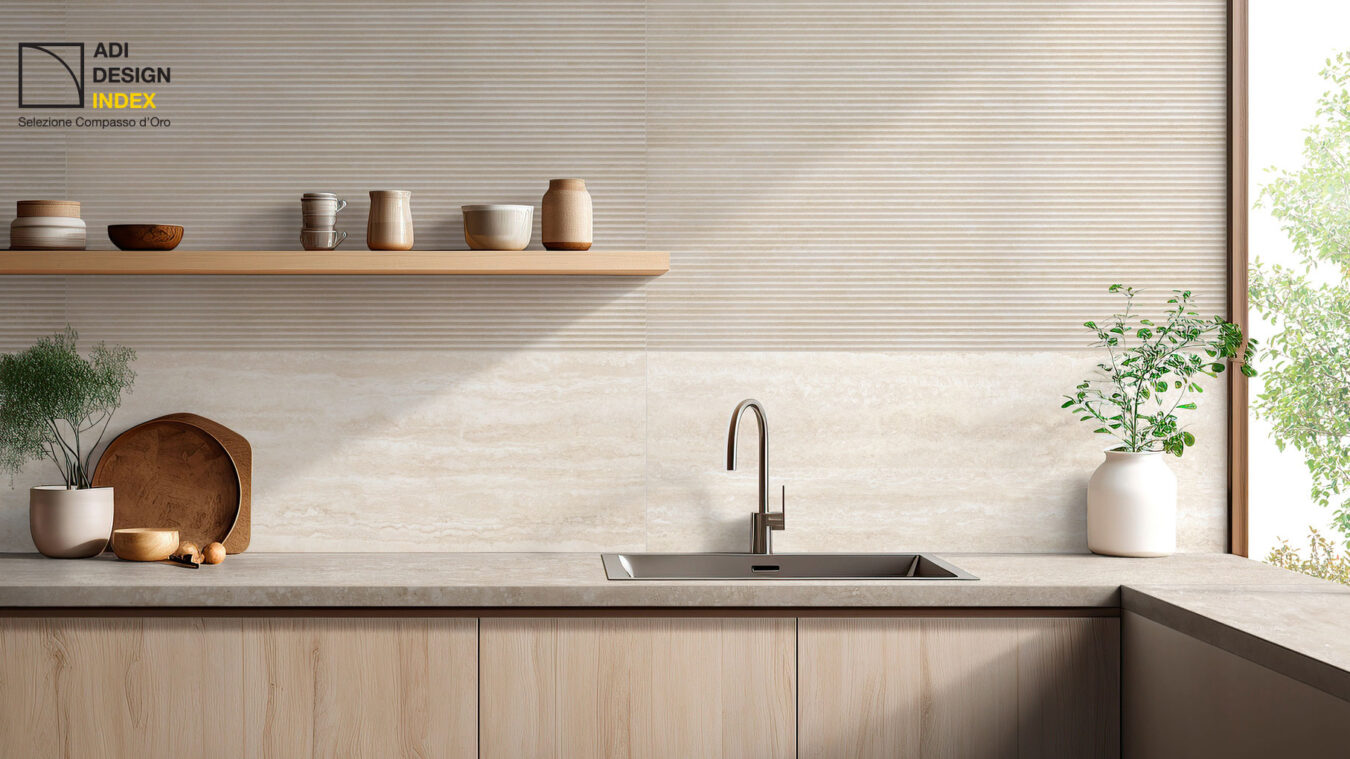 The Travertino Wall collection has been selected for the ADI Design Index 2025, a publication that gathers the best Italian design projects eligible for the ADI Compasso d’Oro Award 2026, the most prestigious national recognition in the sector.