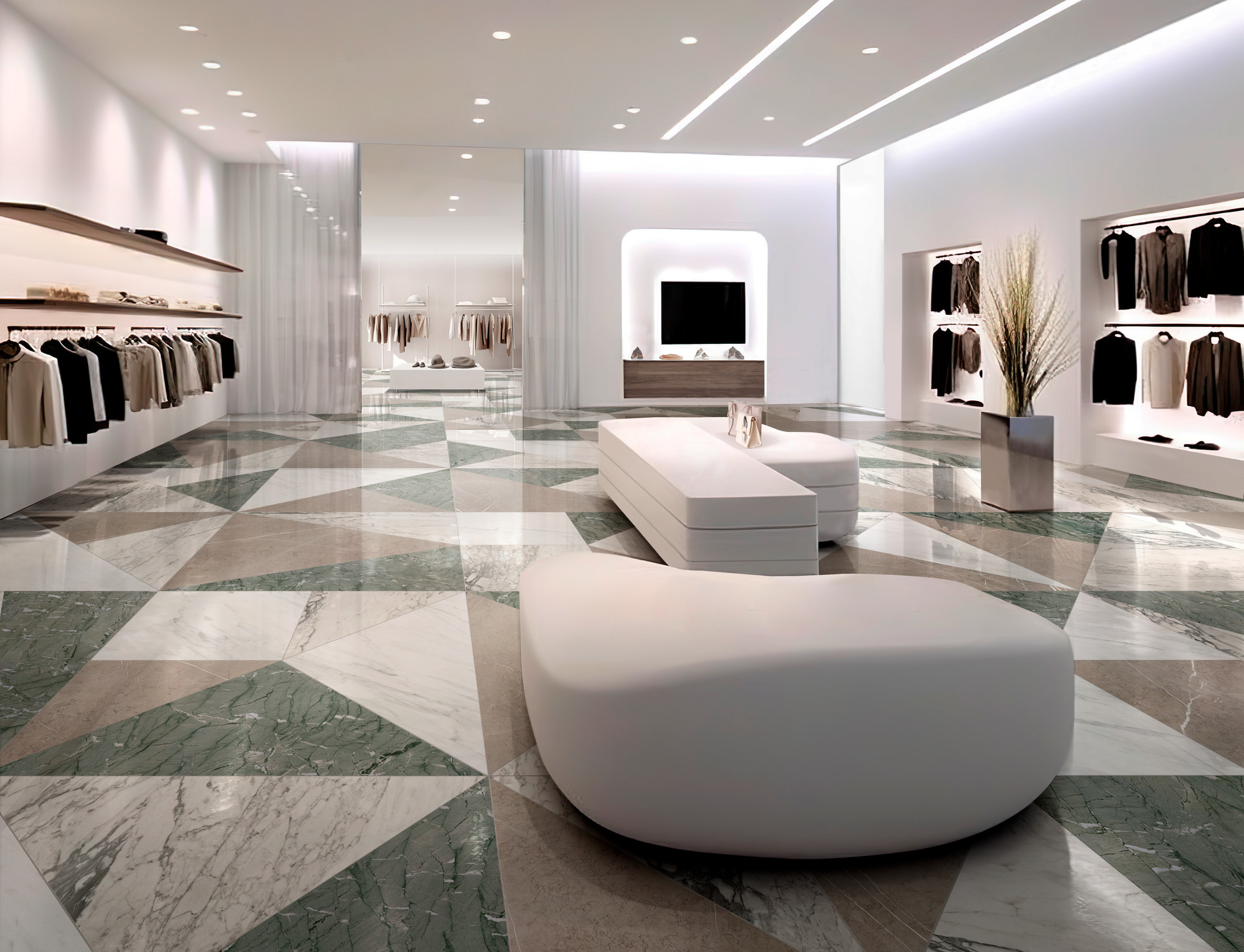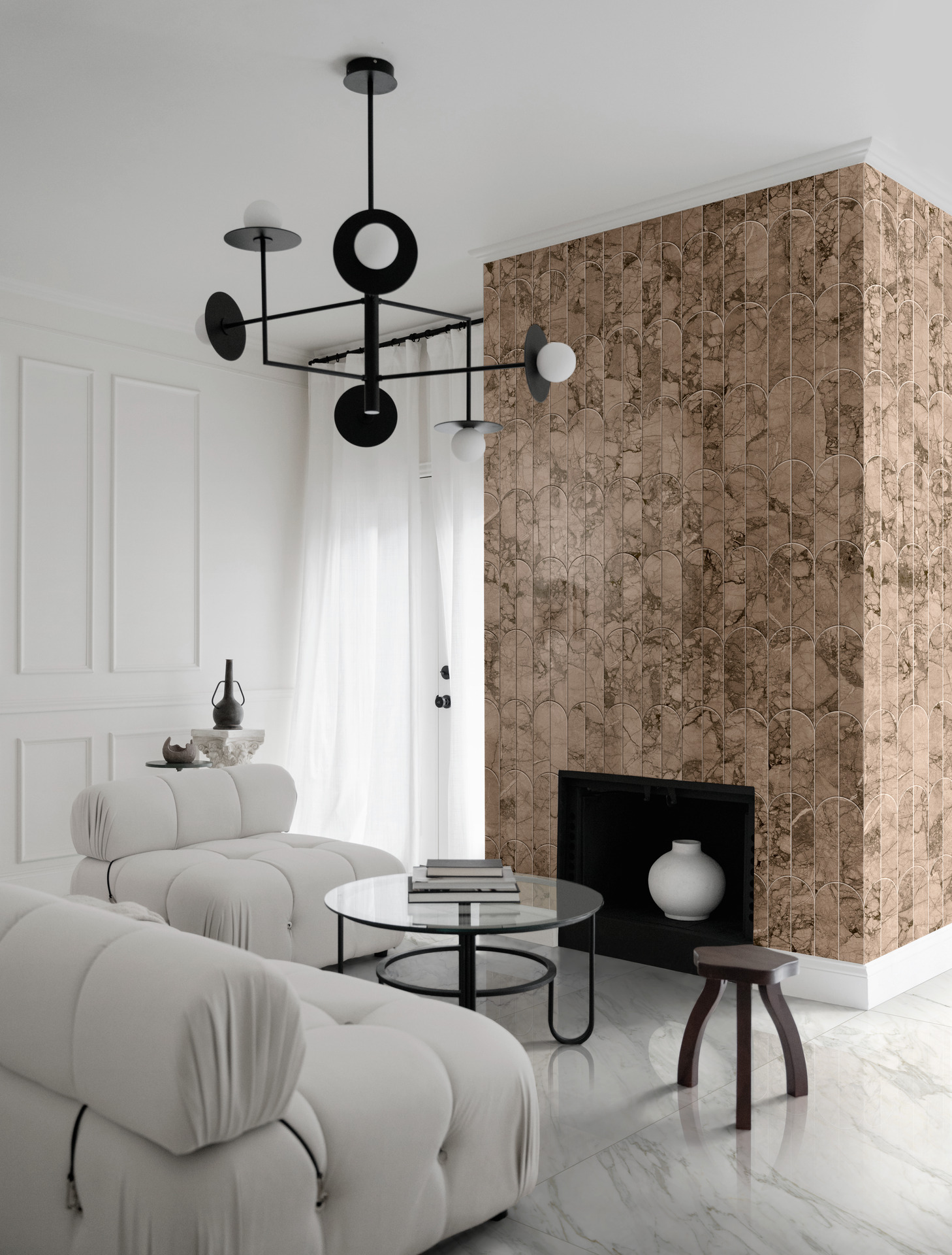 These two new shades fit perfectly into the Incanto collection by Ragno Ceramiche, extending a rich selection already comprising fifteen multicolored marble varieties produced in porcelain stoneware in a wide range of rectified sizes: 120×278, 120×120 and 60×120 cm just 6 mm thick, perfect for refurbishing residential and commercial interiors thanks to the slabs’ light weight, and 75×150, 75×75, 60×60 and 30×60 cm in the standard thickness. The offering is completed by the traditional Mosaic with square chips in size 30×30 cm and the exquisite Glossy Ventaglio Mosaic of 28.1×31 cm.