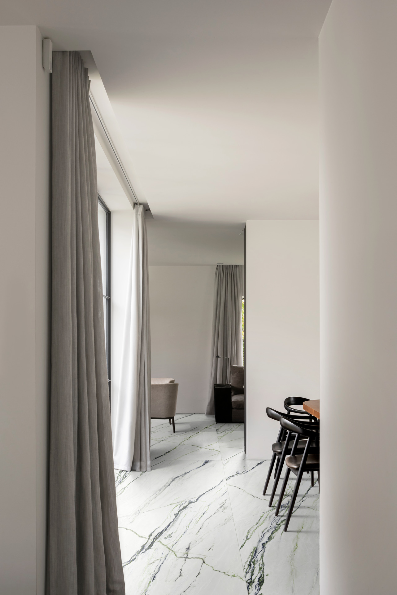 Interiors created with Incanto are sophisticated and never ordinary, with finely balanced textures and a luminosity that reworks marble’s natural aesthetic in a strikingly contemporary style, with lightweight slabs excellent for the renovation of residential or commercial interiors. Large porcelain stoneware surfaces faithfully evoke a selection of the choicest varieties of marble nature has to offer us. The two new colors –Calacatta Essenza and Calacatta Green – are precisely inspired by the stones quarried from the Apuan Alps in Tuscany.
