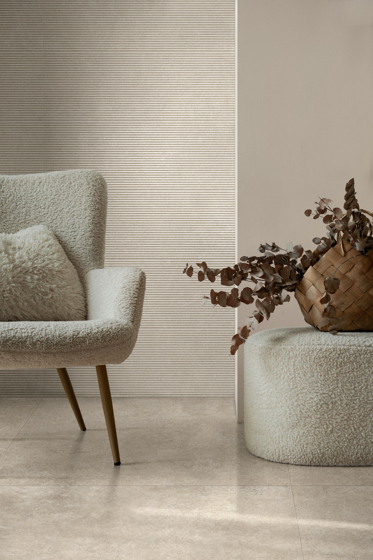 The uniform, natural texture with its wealth of details has a pleasantly soft ‘feel’, making it ideal for inclusion in cosy, comfortable rooms attuned to the latest interior design trends.