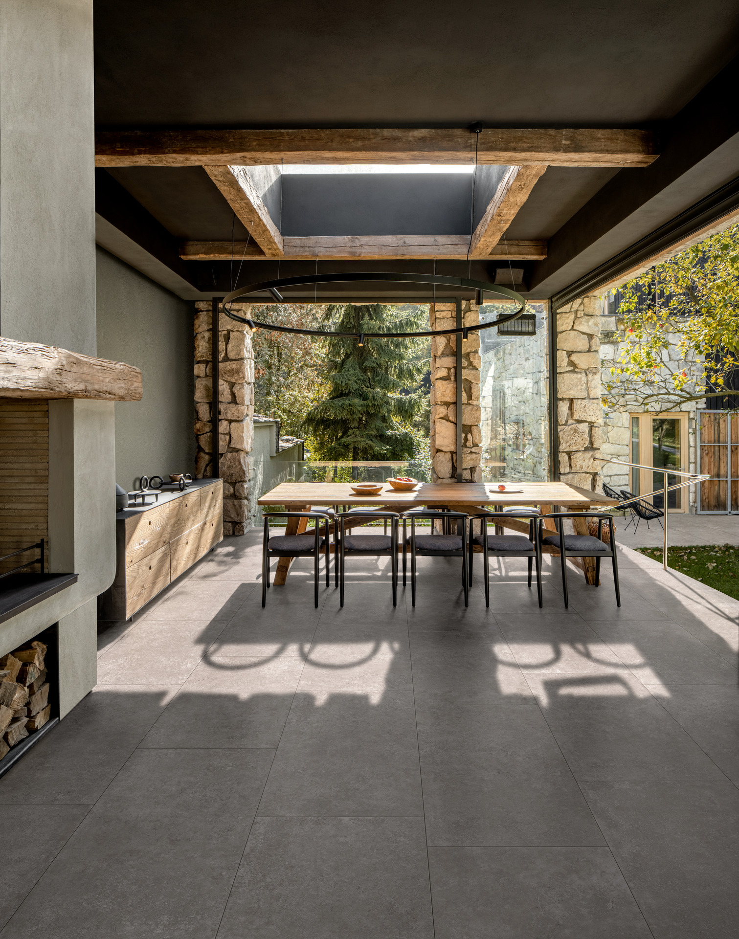 The new Tiempo series comprises five stone-effect colors – Bianco, Beige, Taupe, Grigio and Antracite – with tasteful shade variation, in the 100×100, 60×120, 60×60, 30×60 and 45×45 cm sizes with thickness of 8.5 mm. Except for the unrectified 45×45 cm option, all the sizes are also available in a version with outdoor surface, to enable the creation of outside areas in seamless continuity with interior design schemes.