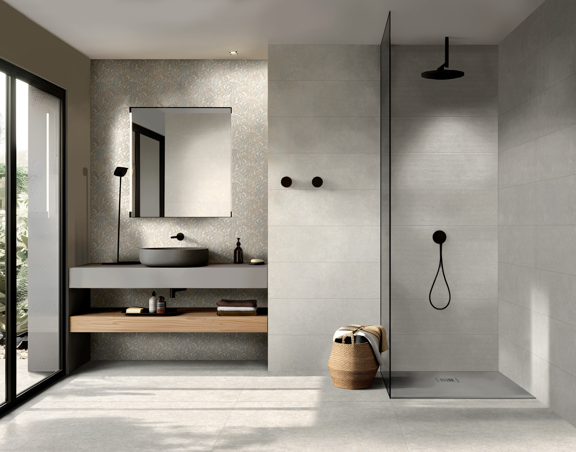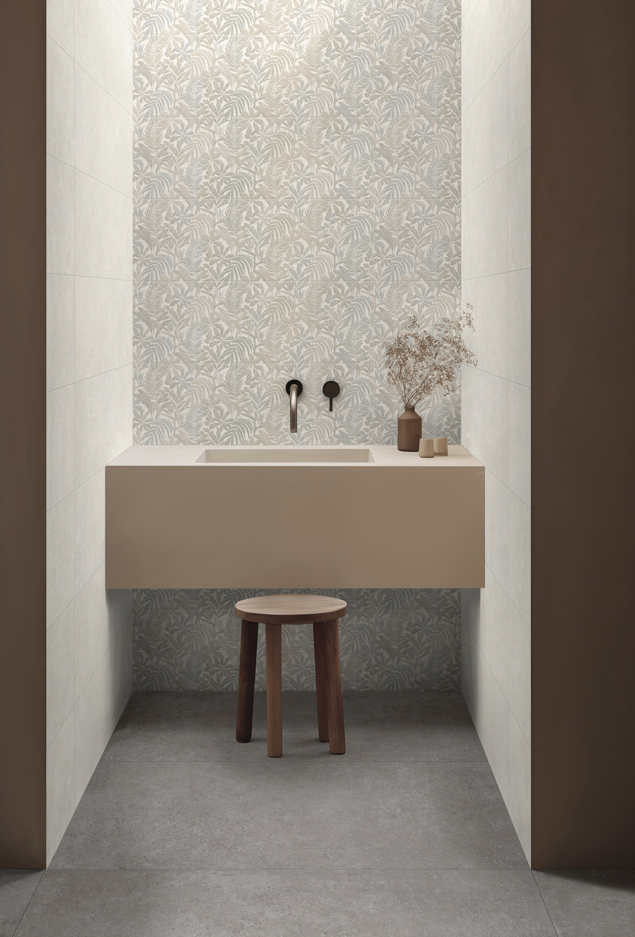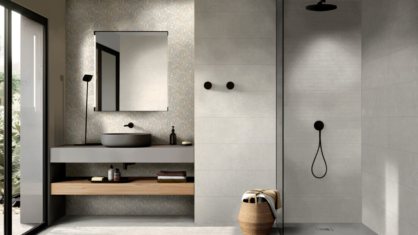 Last but not least, the coordinated wall tiles in 30×90 cm size with thickness of 10 mm provide perfect matching with the floor tiles in the range and offer tone-on-tone material-effect decors.