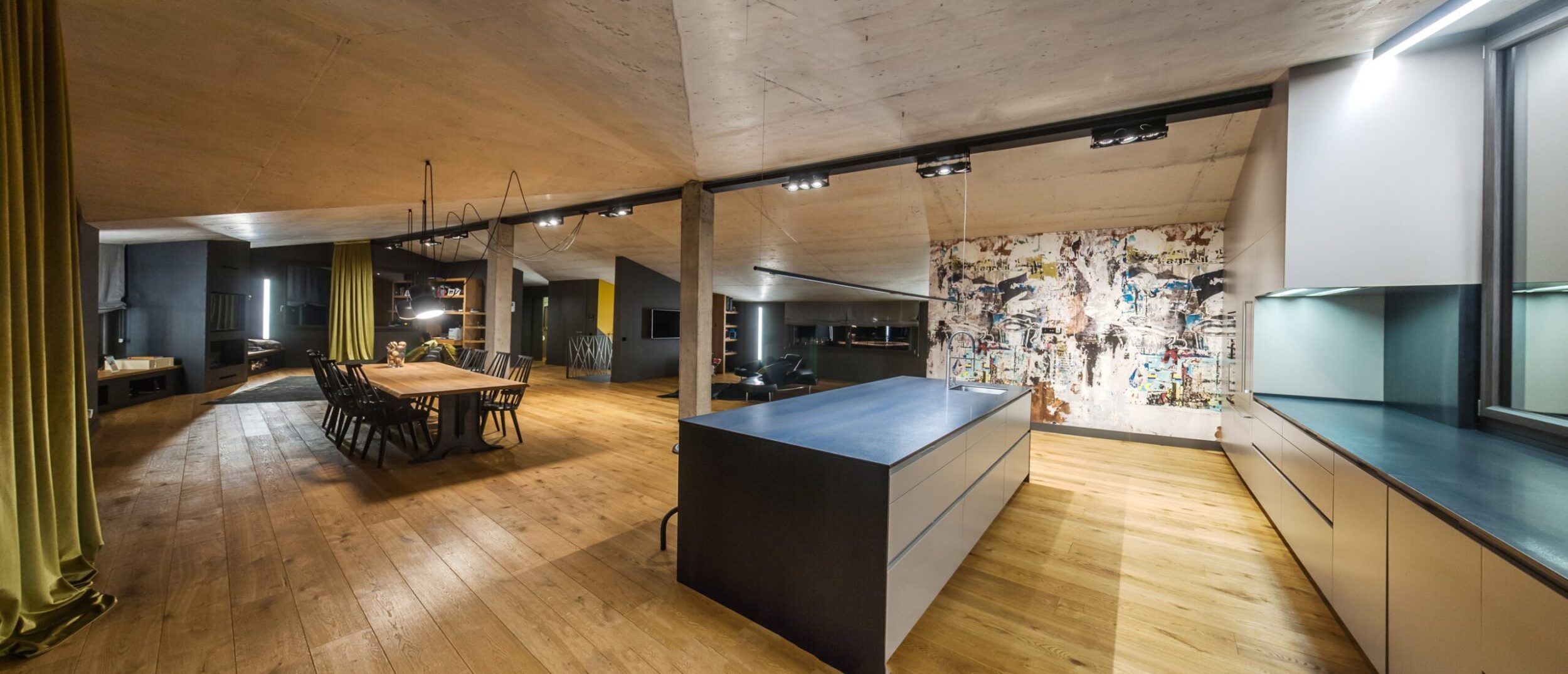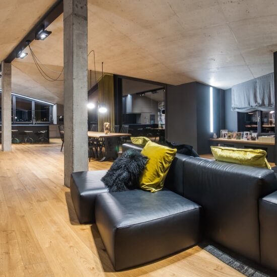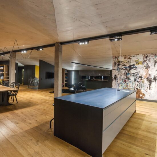 In her projects wood, and especially the most substantial, darkest types of timber, clad a large proportion of the interior surfaces, although all forms of contamination are always possible. Combined with steel, bare concrete and stoneware, wood creates spaces where time seems to play an important role.