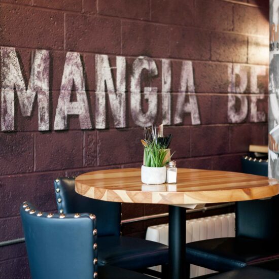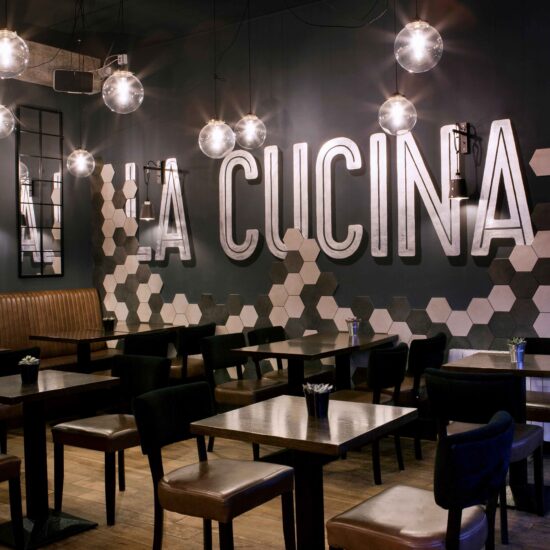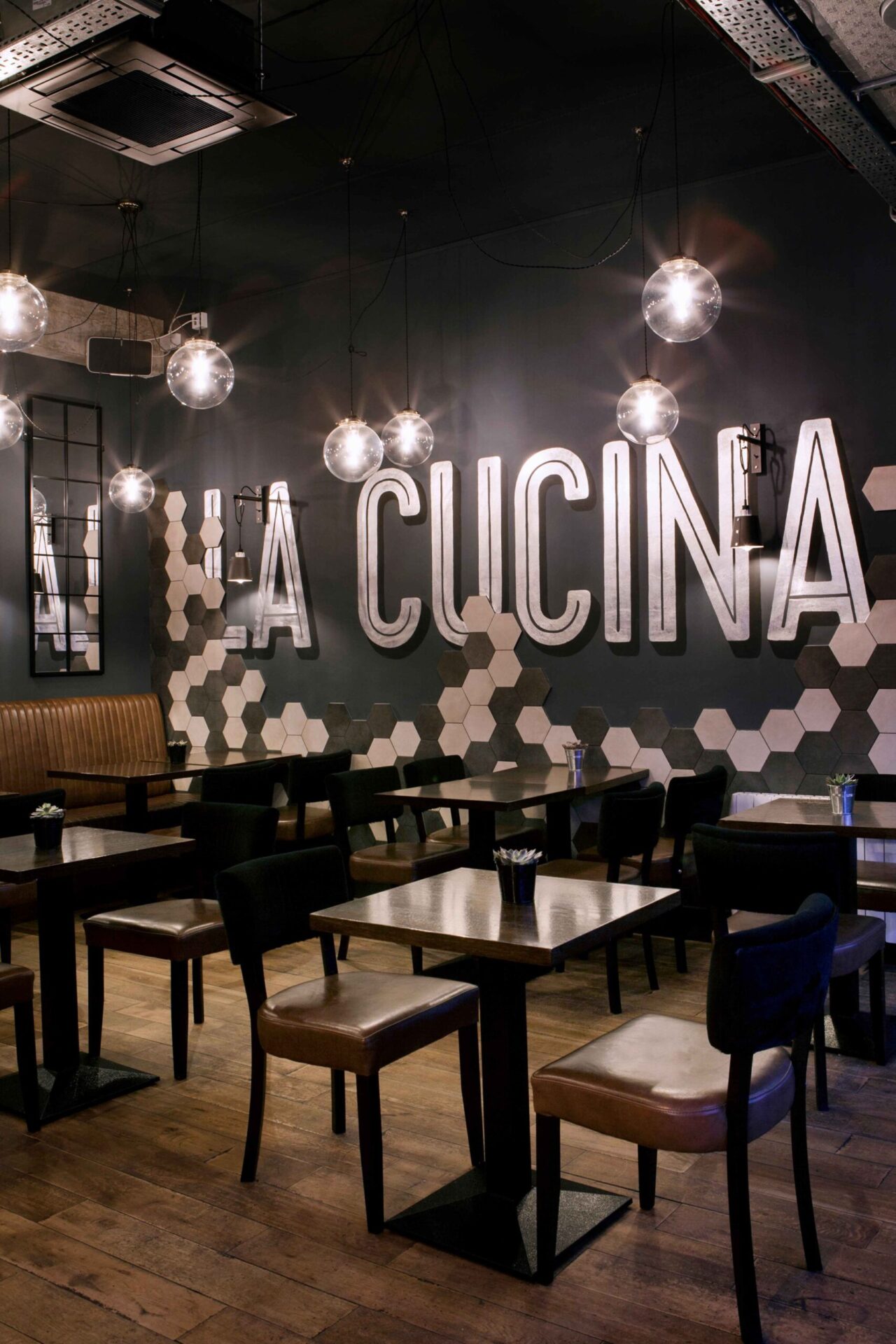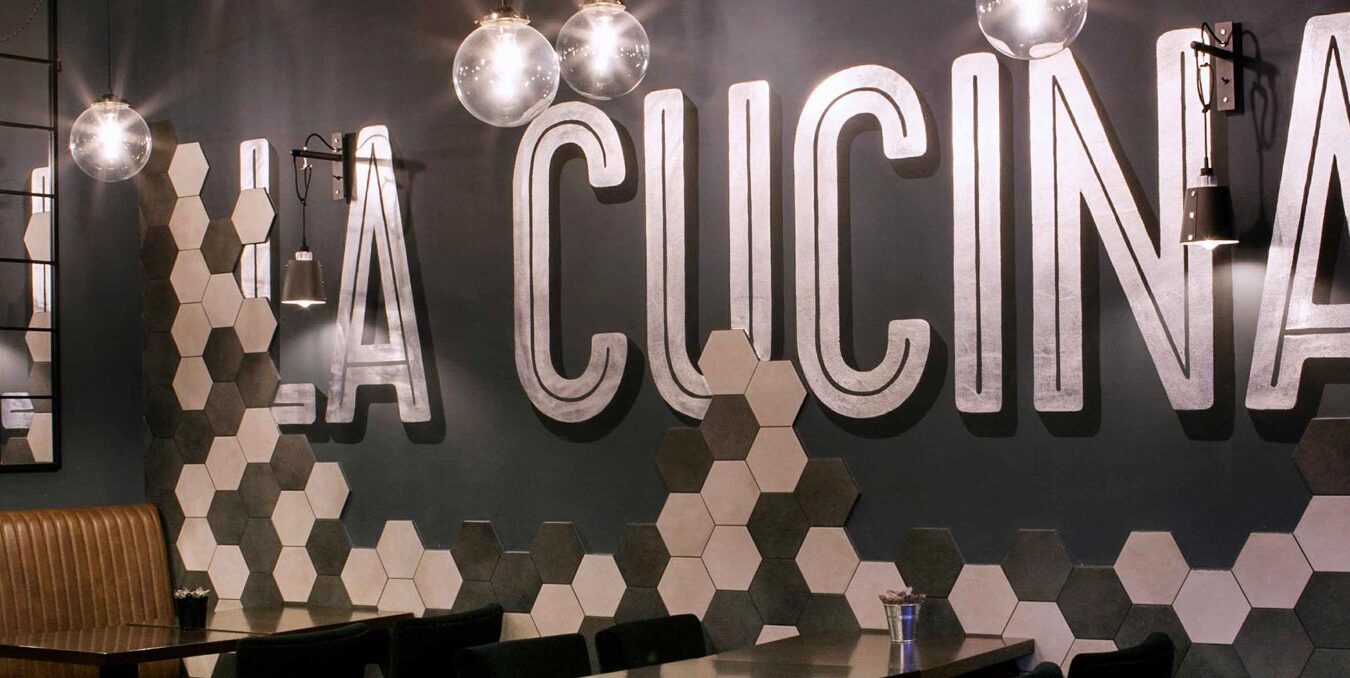 Past and present mingle in the La Cucina Centro restaurant, thanks to well chosen materials