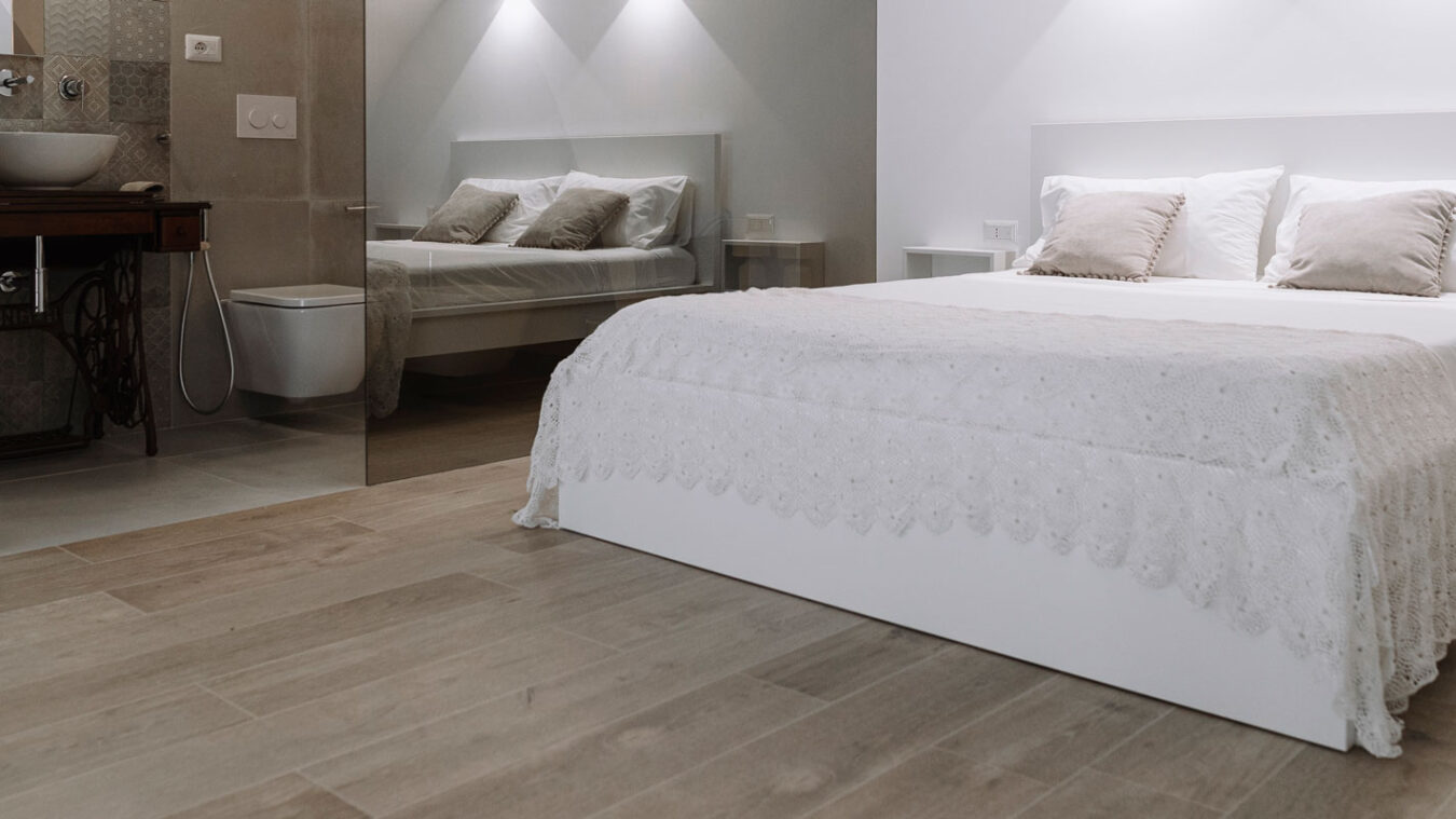 And the stylistic charm of wood is the perfect way to connect the requirements of modern life with the old. This led to the designer choosing Woodsense wood effect stoneware in the soft Beige tone, in the 20×120 cm format, elegant and easy to install in even the most geometrically challenging rooms.