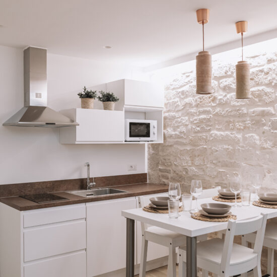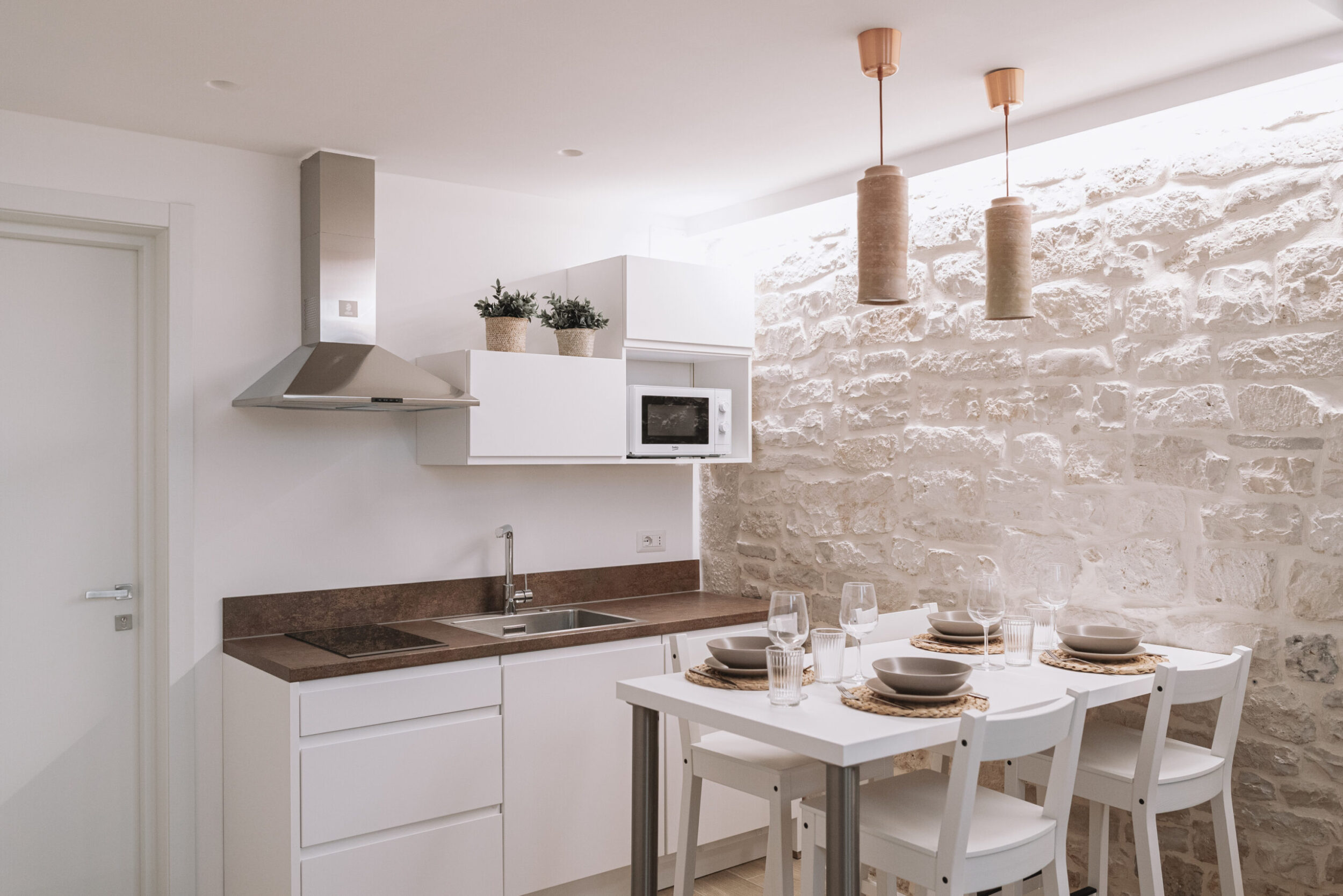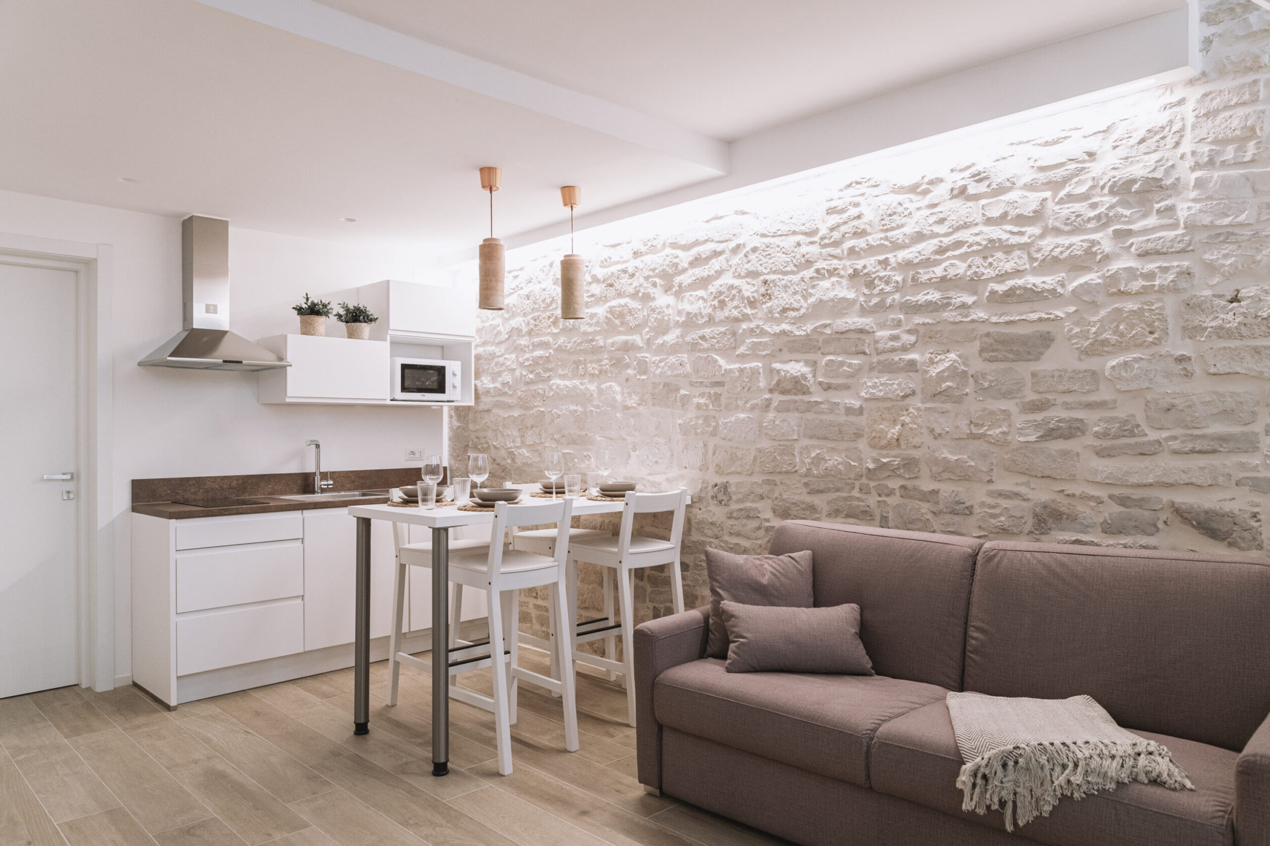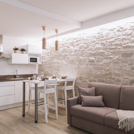 An ancient local stone building houses spaces for hospitality in tune with their setting, designed with close attention to detail.
