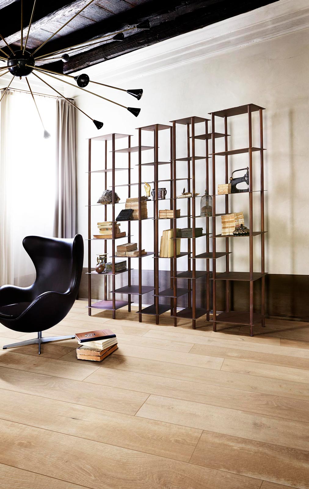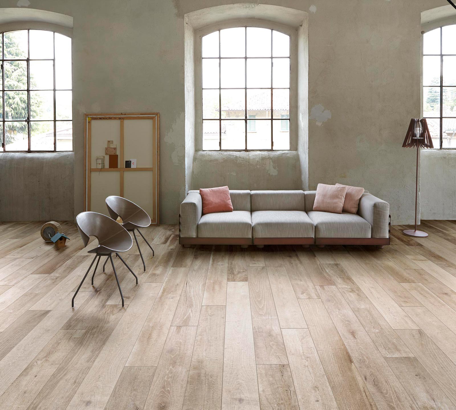 To the touch, the pattern of plank tiles – available in three sizes, from the traditional, substantial 25×150 cm to the more versatile, slender, modern 19×150 cm and 20×120 cm – conveys a warmth and a tactile consistency that inevitably evoke the wonderfully time-worn, flawed wood of the homes of bygone days, referencing images accumulated over centuries of building traditions.