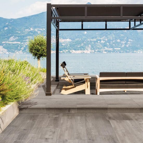 The use of just one variant of the Woodsense wood-effect floor covering in terms of both plank tile size and colour, throughout the home and even on its adjoining outdoor areas, is extremely effective. This option is possible thanks to the inclusion in the range of a structured version, with R11 slip resistance, available in the 20×120 cm size.